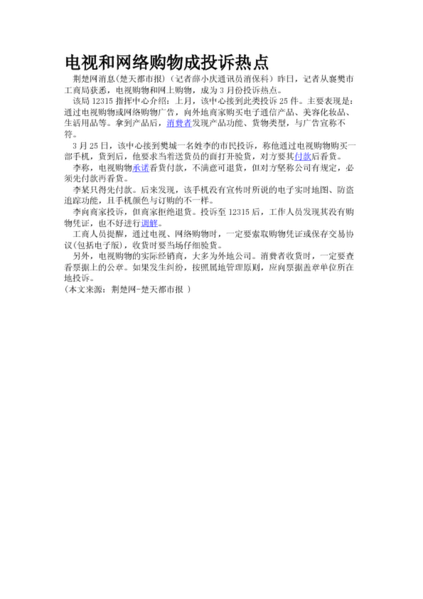 電視和網(wǎng)絡(luò)購(gòu)物成投訴熱點(diǎn)