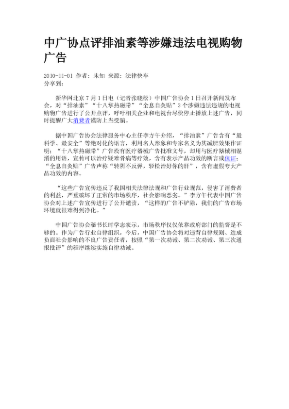 中廣協點評排油素等涉嫌違法電視購物廣告