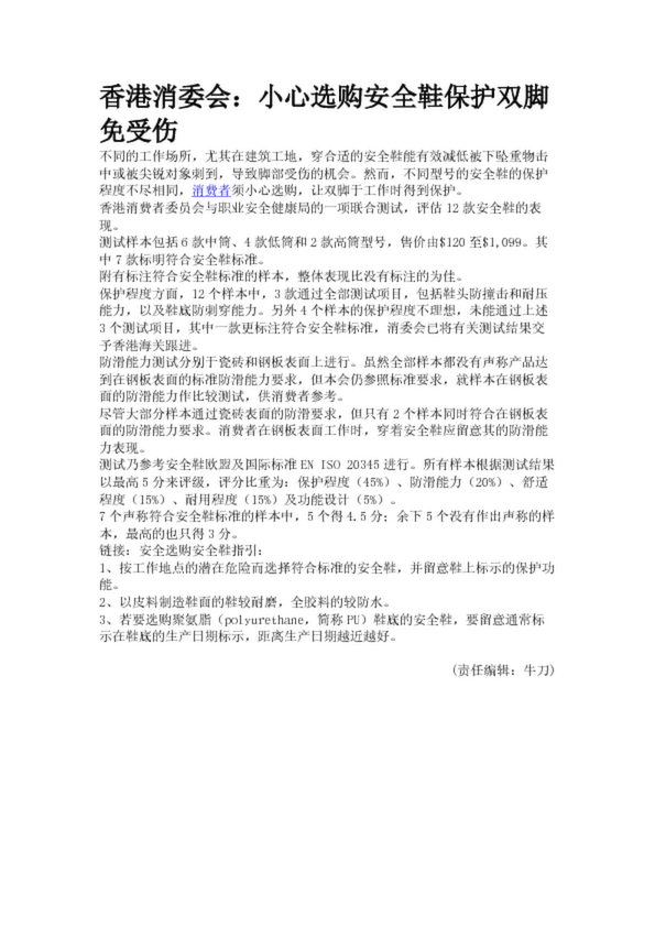 香港消委會(huì):小心選購(gòu)安全鞋保護(hù)雙腳免受傷