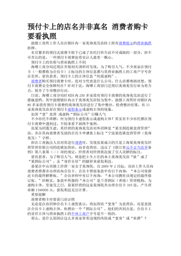 預(yù)付卡上的店名并非真名 消費(fèi)者購(gòu)卡要看執(zhí)照
