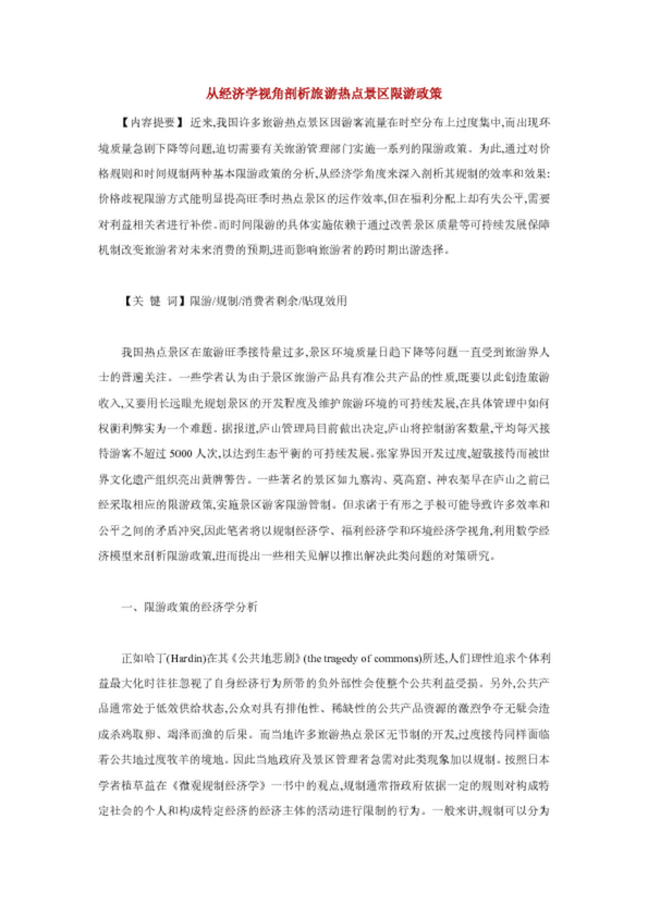 從經(jīng)濟學視角剖析旅游熱點景區(qū)限游政策