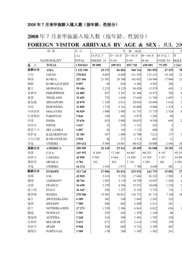 2013年1-12月來華旅游入境人數(shù)(按年齡、性別分)